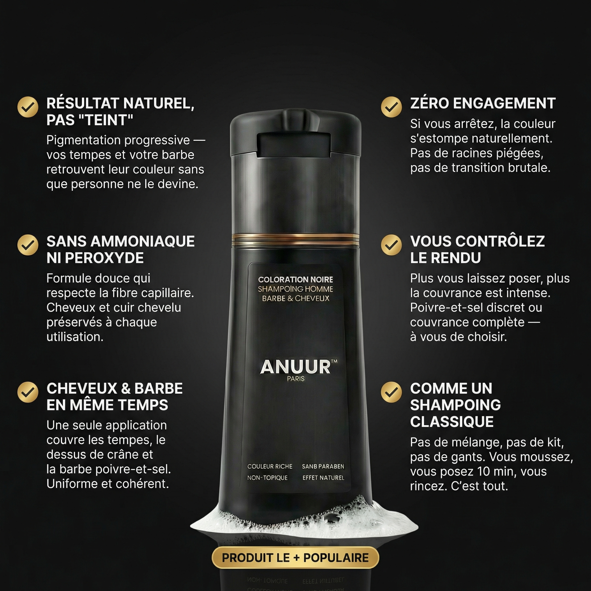 Oui. ANUUR est parfaitement adapté aux cheveux et à la barbe, notamment pour les barbes poivre-sel.